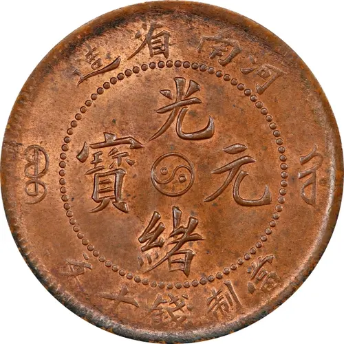 | Mintage | ND (1905) - Y#108a.1: Flat yin-yang; plain pearl; yin-yang with vertical curve - ND (1905) - Y#108a.2: Raised yin-yang - ND (1905) - Y#108a.3: Flat yin-yang; plain pearl; yin-yang with horizontal curve - ND (1905) - Y#108a.4: Flat yin-yang; pearl with swirl - |