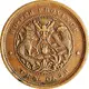 Dragon with pearl at centre and mountain below, all surrounded by English legend. |