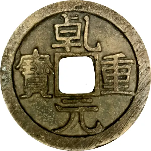 | Obverse lettering | 乾 重 寶 元 (Translation: Qian Yuan Zhong Bao Qianyuan (2nd era of Suzong, 758-760) / Heavy currency) |