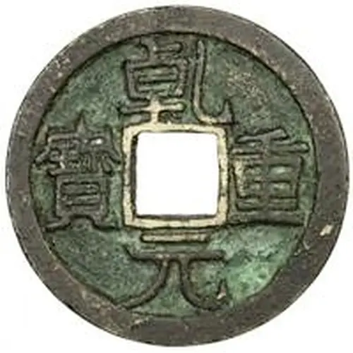 Technical/Grading:As a cast bronze coin, the Qianyuan Zhongbao's technical quality is judged by casting sharpness. Key evaluation points include crisp obverse calligraphy and, critically, the definition of the distinctive reverse cloud motif. Desirable examples exhibit well-formed characters, a smooth field free from significant casting flaws like sand pits, and a complete, even rim. Its substantial 30mm diameter and 8.15g weight indicate its intended 10 Cash value.
