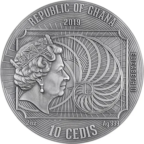 | Obverse lettering | REPUBLIC OF GHANA 2019 ELIZABETH II 2 OZ AG 999 10 CEDIS |