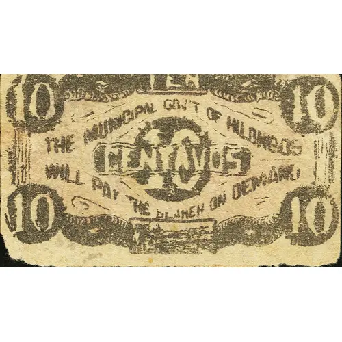 | Obverse lettering | TEN THE MUNICIPAL GOV`T OF HILONGOS WILL PAY THE BEARER ON DEMAND TEN CENTAVOS |