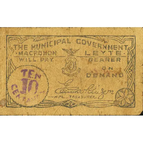 | Opis líce | THE MUNICIPAL GOVERNMENT MACROHON LEYTE WILL PAY THE BEARER ON DEMAND TEN CENTAVOS |