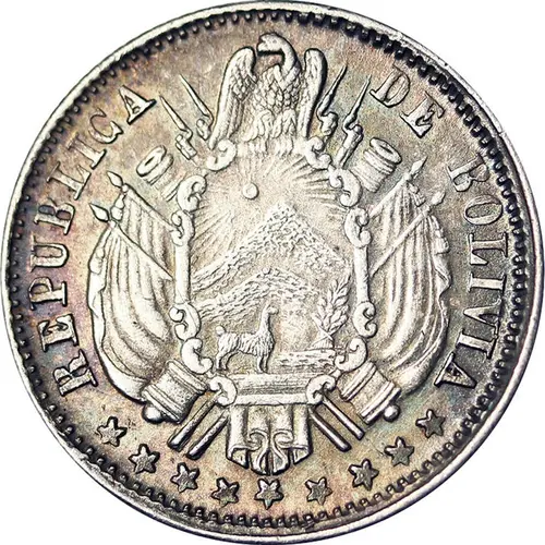 | Mintage | 1871 ER - 9 Stars - 1872 FE - 9 stars - 1872 FE - 9 stars, Error V in BOLIVIA inverted A - |