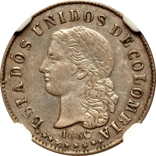 | Obverse lettering | ESTADOS UNIDOS DE COLOMBIA LIBERTAD 1886 |