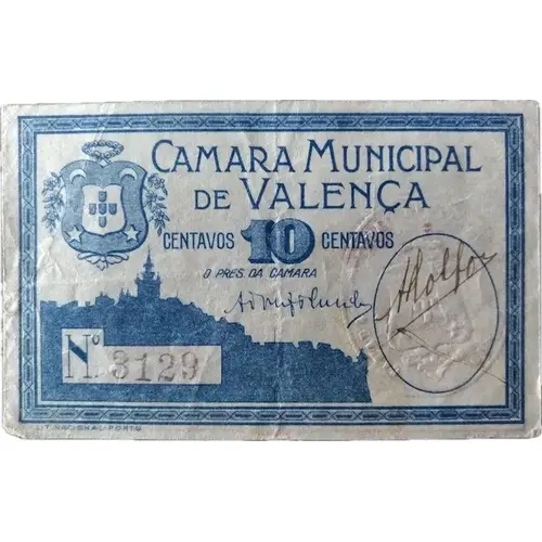 Légende de l’avers CAMARA MUNICIPAL DE VALENÇA 10 CENTAVOS O PRES. DA CAMARA LIT. NACIONAL - PORTO
