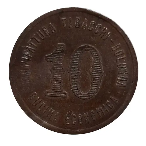| نوشتههای روی توکن | . MANIFATTURA TABACCHI- BOLOGNA. CUCINA ECONOMICA 10 |