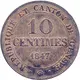 | Reverse lettering | REPUBLIQUE ET CANTON DE GENEVA 10 CENTIMES 1847 |