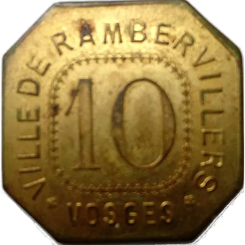 Obverse lettering VILLE DE RAMBERVILLERS 10 VOSGES