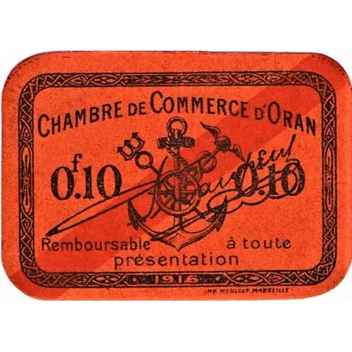 | 正面铭文 | CHAMBRE DE COMMERCE D`ORAN 0f,10 Remboursable à toute présentation 1916 IMP MOULLOT MARSEILLE |