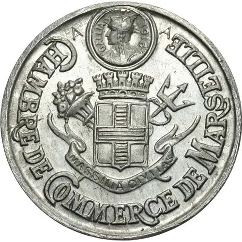 Opschrift voorzijde A A GALLIA 1916 MASSILIA CIVITAS CHAMBRE DE COMMERCE DE MARSEILLE