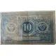 Two diamond-shaped coats of arms in a circle on either side of the 10. Left: a sword. Right: a lion. |
