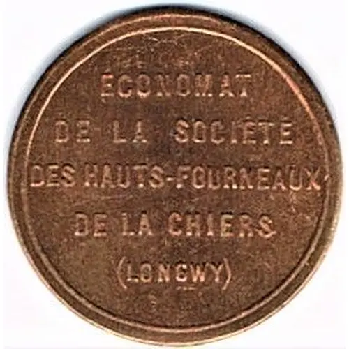 | Obverse lettering | ECONOMAT DE LA SOCIETE DES HAUTS-FOURNEAUX DE LA CHIERS (LONGWY) |