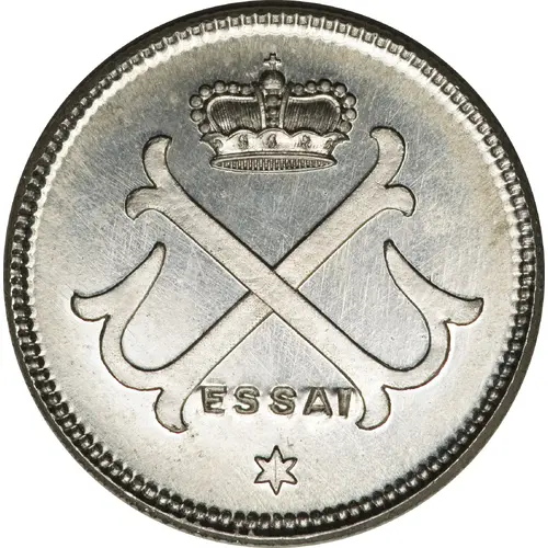 | Obverse description | Two crossed L-shaped anchors under a crown, at the bottom the word ESSAI and a star. |