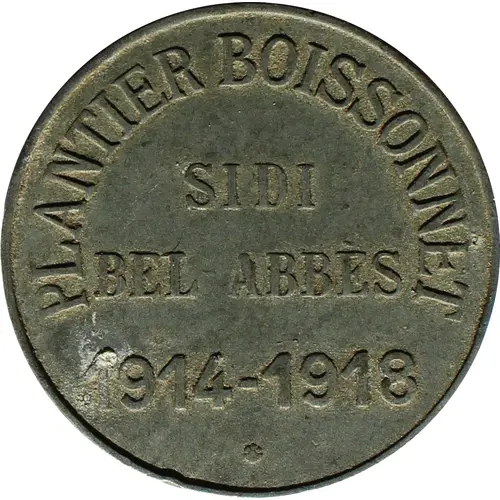 | Obverse lettering | PLANTIER BOISSONNET SIDI BEL-ABBES 1914-1918 |