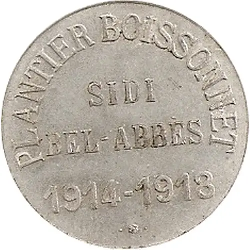 | Obverse lettering | PLANTIER BOISSONNET SIDI BEL-ABBEES 1914-1918 |