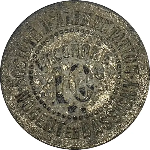 | Obverse lettering | SOCIÉTÉ D`ALIMENTATION L`ECONOME 10c_ ·NOGENT EN BASSIGNY· |