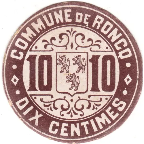 | Obverse lettering | COMMUNE DE RONCQ 10 10 DIX CENTIMES |