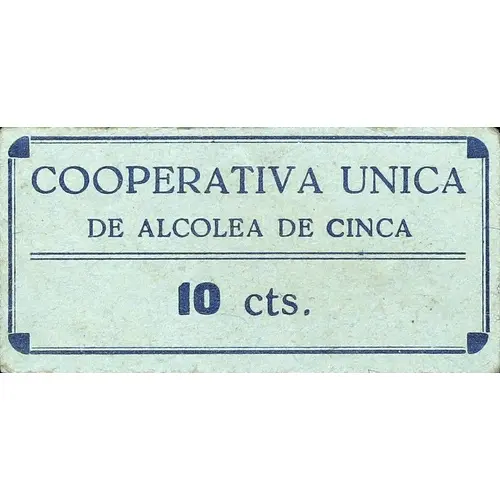 COPERATICA UNICA DE ALCOLEA DE CINCA 10 cts. (Translation: Unique Cooperative of Alcolea de Cinca 10 Centimos) |