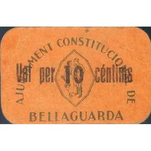 AJUNTAMENT CONSTITUCIONAL DE BELLAGUARDA Val per 10 cèntims (Translation: Constitutional City Council of Bellaguarda Valid for 10 Centimos) |