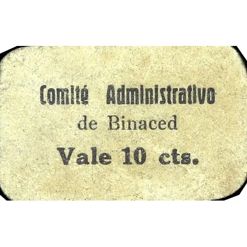 Comité Administrativo de Binaced Vale 10 cts. (Translation: Administrative Committee of Binaced It`s worth 10 Centimos) |