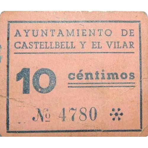 AYUNTAMIENTO DE CASTELLBELL Y EL VILAR 10 céntimos Nº 4780 (Translation: City Council of Castellbell y el Vilar 10 Centimos) |