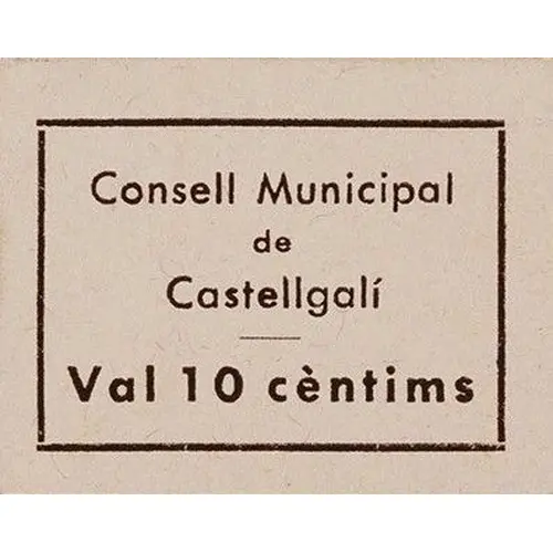 Consell Municipal de Castellgalí Val 10 cèntims (Translation: Municipal Council of Castellgalí It`s worth 10 Centimos) |