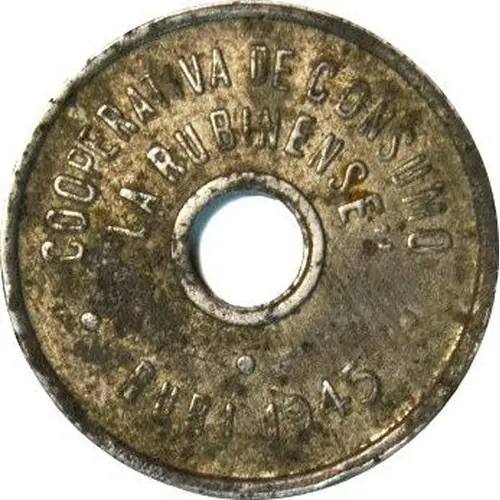 | 正面铭文 | COOPERATIVA DE CONSUMO `LA RUBINENSE` · RUBÍ 1945 · (Translation: La Rubinense Consumer Cooperative) |