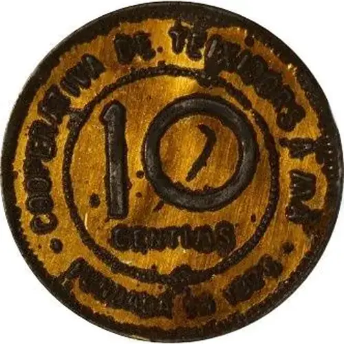 10 CENTIMS. COOPERATIVA DE TEIXIDORS A MA ⋆ FUNDADA EN 1876 ⋆ (Translation: 10 Centimos Hand Knitters Cooperative Founded in 1876) |