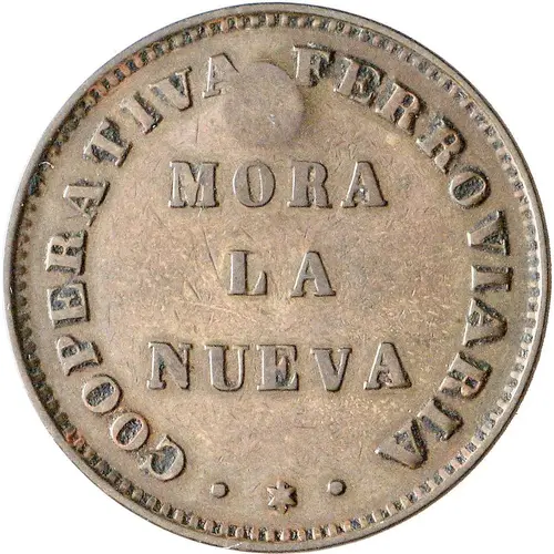 | Obverse lettering | · COOPERATIVA FERROVIARIA · MORA LA NUEVA (Translation: Railway Cooperative) |