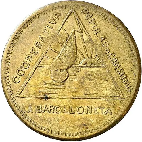 | Obverse lettering | COOPERATIVA POPULAR DE CONSUMO LA BARCELONETA (Translation: Popular Consumer Cooperative `La Barceloneta`) |