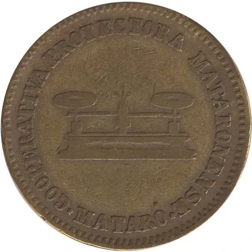 | Obverse lettering | COOPERATIVA PROTECTORA MATARONENSE ⋆ MATARÓ ⋆ (Translation: Protective Cooperative of Mataro) |