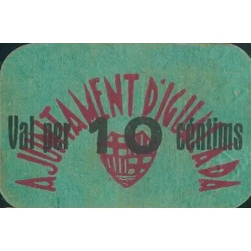 AJUNTAMENT D`IGUALADA Val per 10 cèntims (Translation: City Council of Igualada Valid for 10 Centimos) |