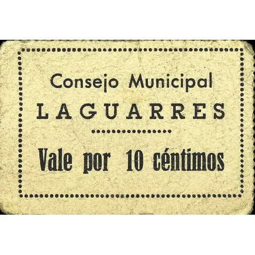 Consejo Municipal LAGUARRES Vale por 10 céntimos (Translation: Municipal Council Laguarres Valid for 10 Centimos) |