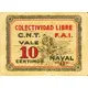 | Ön yüz lejandı | Colectividad Libre C.N.T F.A.I. VALE 10 CÉNTIMOS NAVAL (HUESCA) (Translation: Free Collectivity C.N.T F.A.I. Voucher 10 Centimos Naval (Huesca)) |