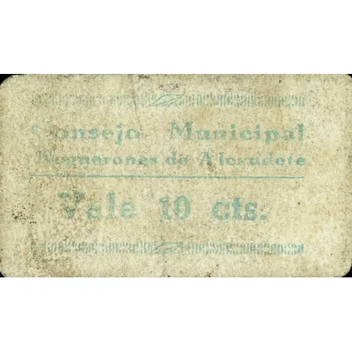 Consejo Municipal Noguerones de Alcaudete Vale 10 cts. (Translation: Municipal Council Noguerones de Alcaudete It is worth 10 Centimos) |