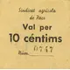 | Obverse lettering | Sindicat agrícola de Pacs Val per 10 céntims Núm. 0747 (Translation: Agricultural Union of Pacs Voucher for 10 Centimos) |