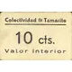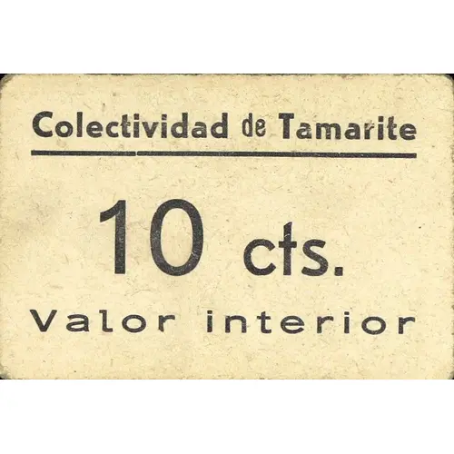 Colectividad de Tamarite 10 cts. Valor interior (Translation: Collectivity of Tamarite 10 Centimos Local value) |