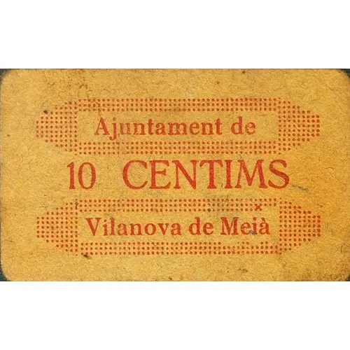 Ajuntament de Vilanova de Meià 10 CENTIMS (Translation: City Council of Vilanova de Meiá 10 Centimos) |