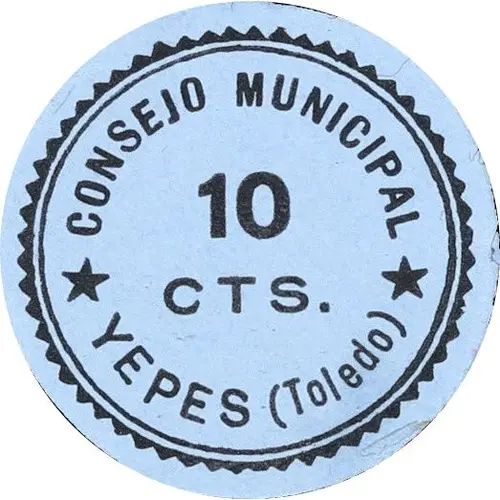 CONSEJO MUNICIPAL YEPES (Toledo) 10 CTS. (Translation: Municipal Council Yepes) |