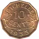 | Reverse lettering | SEYCHELLES 10 CENTS 1953 |