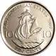 | Beschrijving keerzijde | Denomination in numbers to the right and left of the `Golden Hind`, ship of corsair and explorer Sir Francis Drake (1542-1596) and below in letters. |