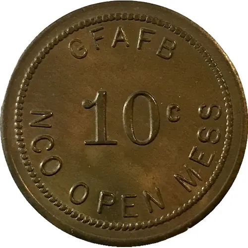 | Obverse lettering | GFAFB 10c NCO OPEN MESS |