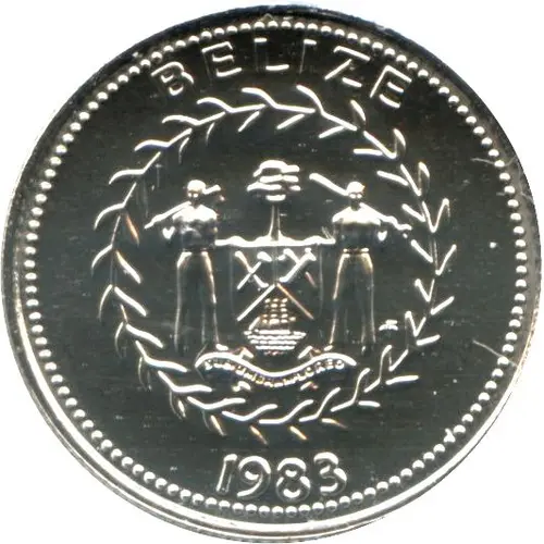 | Obverse description | Coat of arms of Belize within wreath. Beaded circle around the rim. |