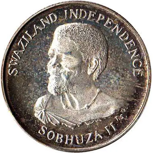 | Obverse lettering | SWAZILAND INDEPENDENCE SOBHUZA II T.S. |
