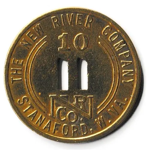 | Obverse lettering | THE NEW RIVER COMPANY 10 NR CO. STANAFORD, W. VA. |