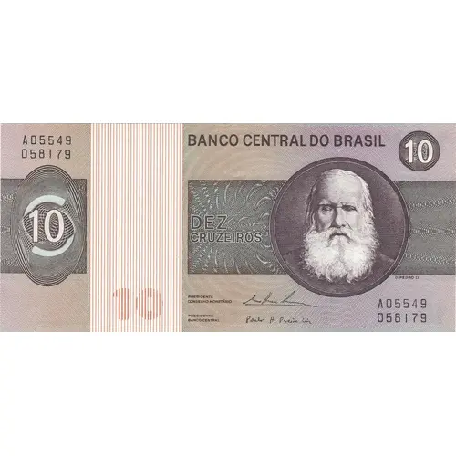 | Obverse lettering | BANCO CENTRAL DO BRASIL 10 10 DEZ CRUZEIROS D. PEDRO II 10 PRESIDENTE CONSELHO MONETÁRIO PRESIDENTE BANCO CENTRAL (Translation: Brazilian Central Bank 10 Ten Cruzeiros D. Pedro II 10 President Monetary Council President Central Bank) |