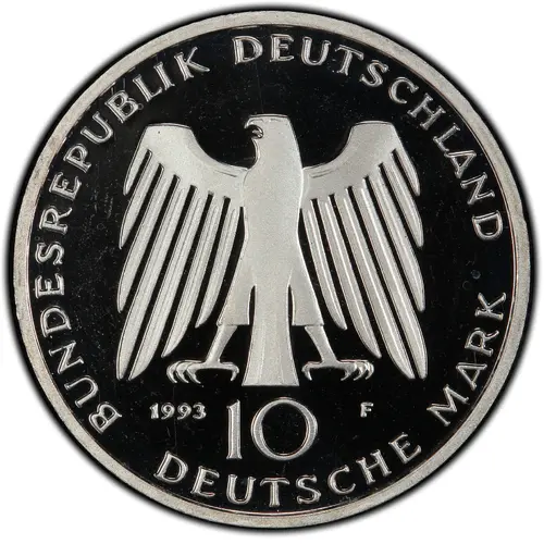 | 正面铭文 | BUNDESREPUBLIK DEUTSCHLAND 10 DEUTSCHE MARK 1993 F |