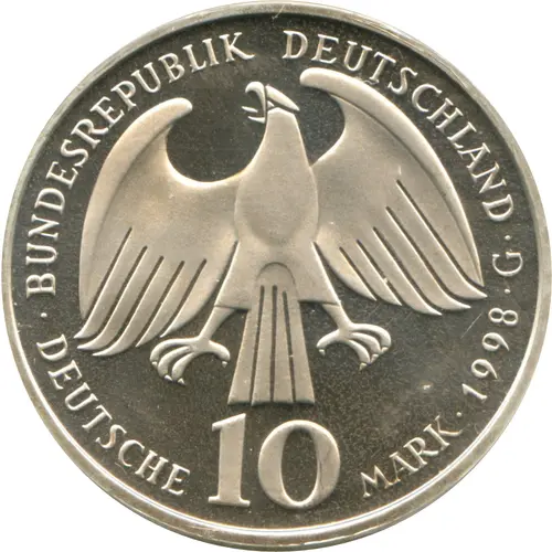 | Légende de l’avers | BUNDESREPUBLIK DEUTSCHLAND ·DEUTSCHE 10 MARK ·1998·J· |