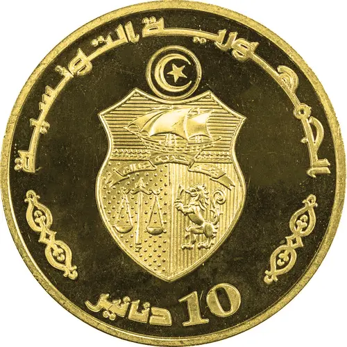 | Obverse lettering | الجمهورية التونسية عشرة 10 دنانير (Translation: The Tunisian Republic 10 Dinars) |